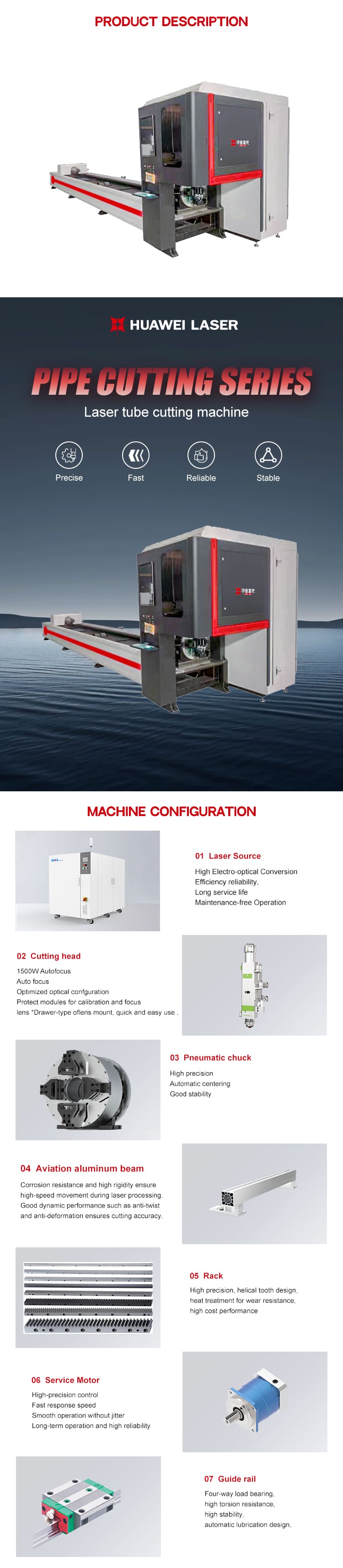 دستگاه برش لیزری HUAWEI LASER 6000W با دقت بالا برای پردازش کارآمد و دقیق لوله های فلزی گرد، مربع و نامنظم طراحی شده است. سیستم چاک دوگانه آن گیره پایدار، حداقل لرزش و چرخش دقیق را در حین برش با سرعت بالا تضمین می کند. مجهز به منبع لیزر فیبر با کارایی بالا و نرم افزار کنترل هوشمند، برش های تمیز، لبه های صاف و تکرارپذیری عالی را ارائه می دهد. دستگاه برش لیزری فیبر لوله دوچک HUAWEI LASER یک دستگاه جوش لیزری دستی پیشرفته جایگزین است که به طور خاص برای پردازش لوله و لوله با راندمان بالا طراحی شده است. مجهز به چاک پنوماتیک دوگانه، گیره پایدار، مرکز خودکار و چرخش دقیق را برای برش های صاف و دقیق روی لوله های فلزی گرد، مربع و نامنظم تضمین می کند. منبع لیزر فیبر پرقدرت آن سرعت برش سریع، لبه های تمیز و حداقل تغییر شکل حرارتی را ارائه می دهد. سیستم برش لوله لیزری HUAWEI که برای ساخت فلز، ساخت مبلمان، تولید تجهیزات تناسب اندام و اجزای خودرو طراحی شده است، دقت، قابلیت اطمینان و بهره وری فوق العاده ای را برای کاربردهای صنعتی مدرن ارائه می دهد. این قابلیت اطمینان قوی و بهره وری ثابت را برای کاربردهای پردازش لوله فراهم می کند.